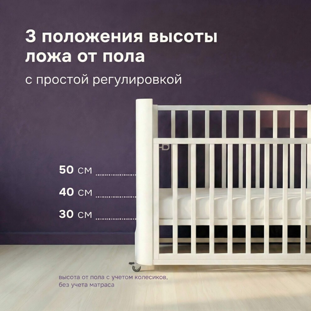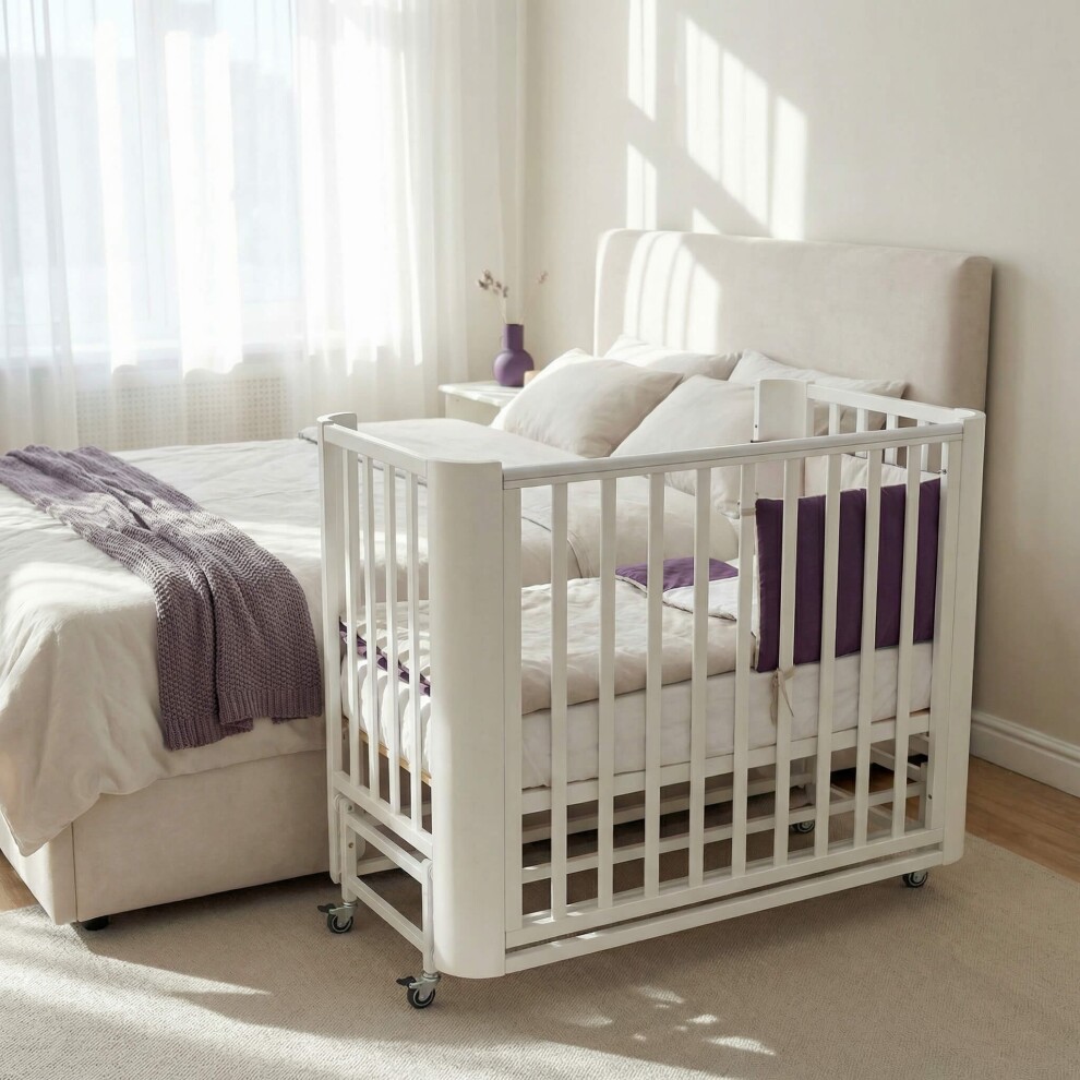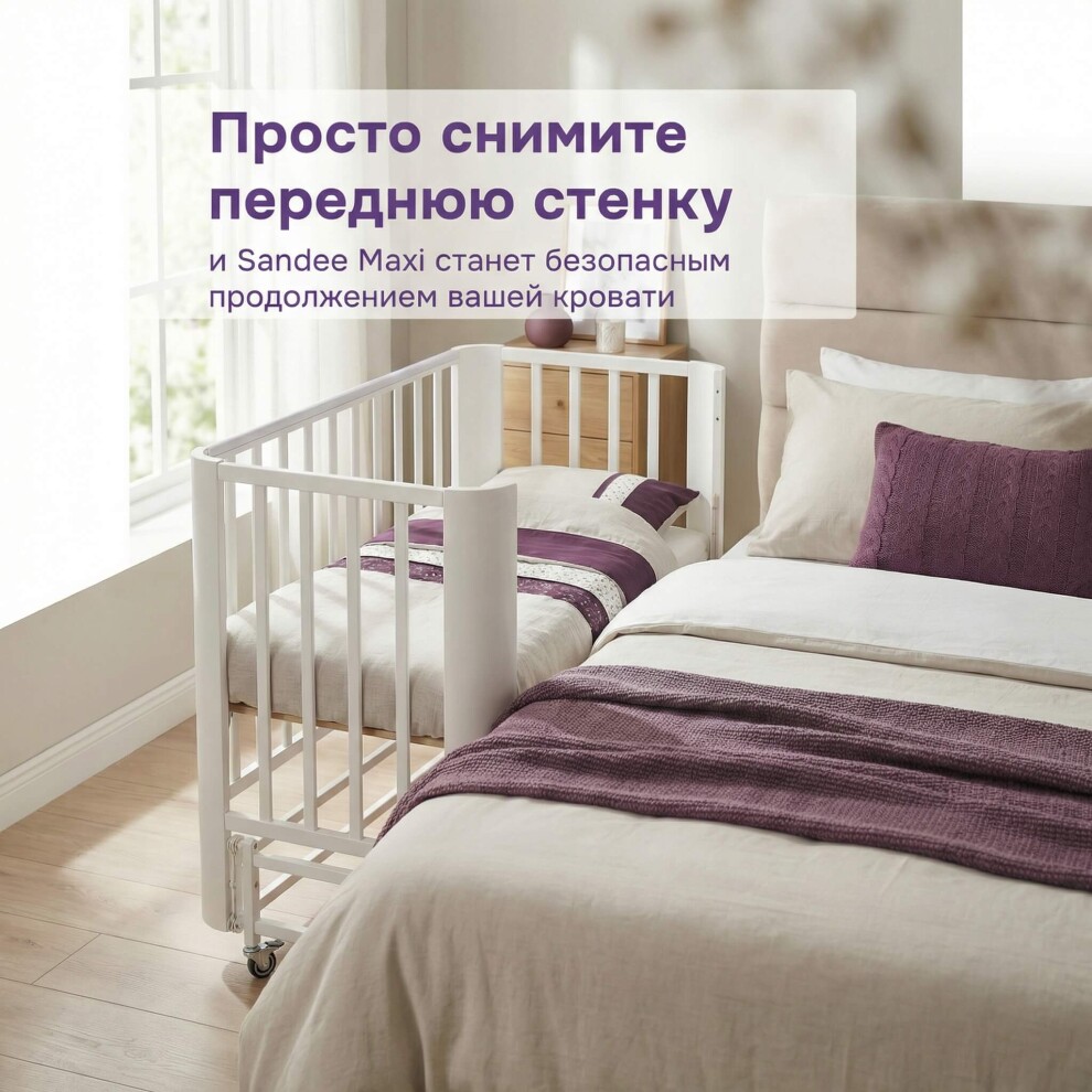 Приставная кроватка Mr Sandman Sandee MAXI — массив бука, маятник, 3 уровня ложа, колесики – Белый